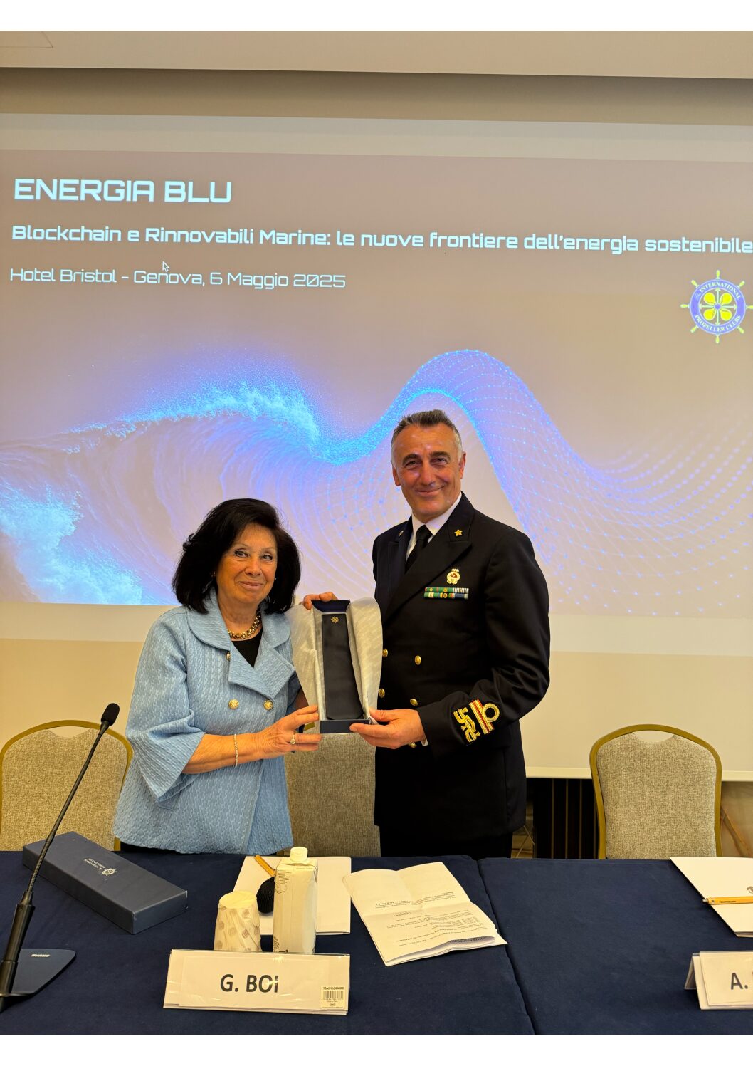 Il Contrammiraglio ha ringraziato per l’invito e ha parlato dell’importanza della nuova normativa SECA, che impone alle navi nel Mediterraneo l’uso di carburanti più puliti. Ha sottolineato il ruolo della Capitaneria nei controlli e l’importanza di informare correttamente su questi temi. Ha poi evidenziato il valore della partecipazione dei giovani, che saranno i protagonisti del cambiamento verso tecnologie e carburanti più sostenibili. Infine, ha ricordato l’impegno della Capitaneria, insieme alle altre istituzioni, per rendere Genova sempre più legata e attenta al mare.